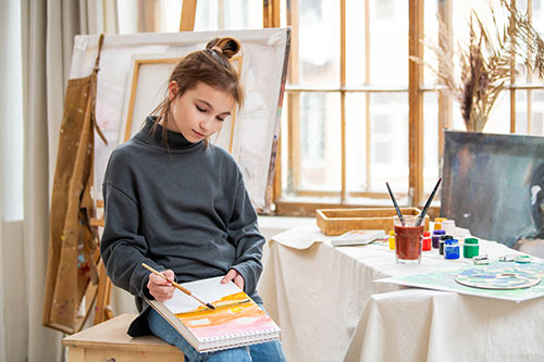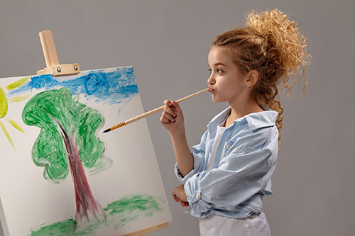 Copiii mari experimentează tehnici complexe și învață cum să-și exprime personalitatea și emoțiile prin artă.